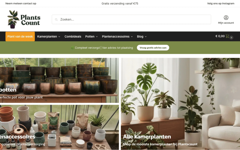 Webshop voor planten en potten met AI-powered visualizer. Innovatief en gebruiksvriendelijk.
